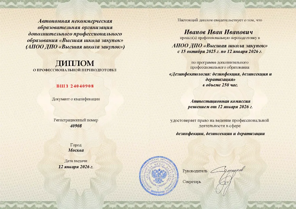 Профессиональная переподготовка на 250 часов. Изучите организацию санитарной службы, все виды обеззараживания (дезинфекция, дезинсекция, дератизация), стерилизацию и правовые нормы. Программа включает практическую работу для отработки навыков. Онлайн-обучение в в Самаре с итоговой аттестацией.