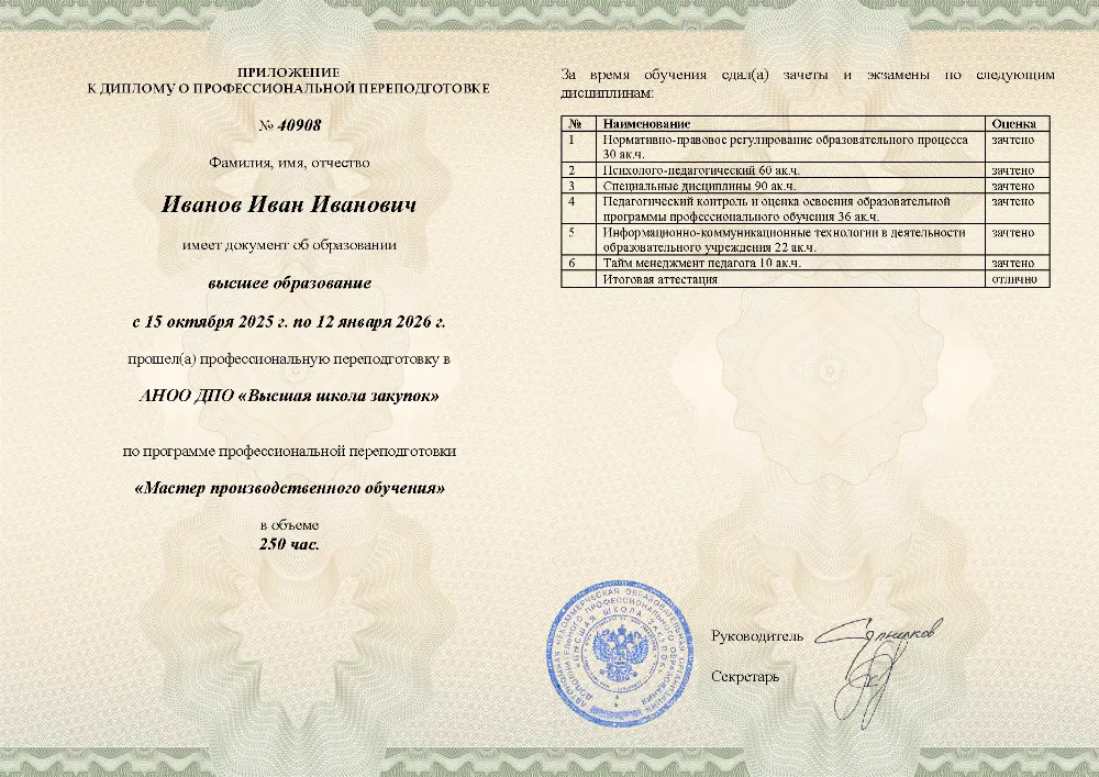 Профессиональная переподготовка, 250 академических часов, 11 модулей: нормативно-правовое обеспечение, основы педагогики и психологии, проектирование образовательных программ, методика профессионального обучения, педагогический контроль, применение ИКТ и тайм-менеджмент педагога. Онлайн-обучение в в Самаре с итоговой аттестацией.