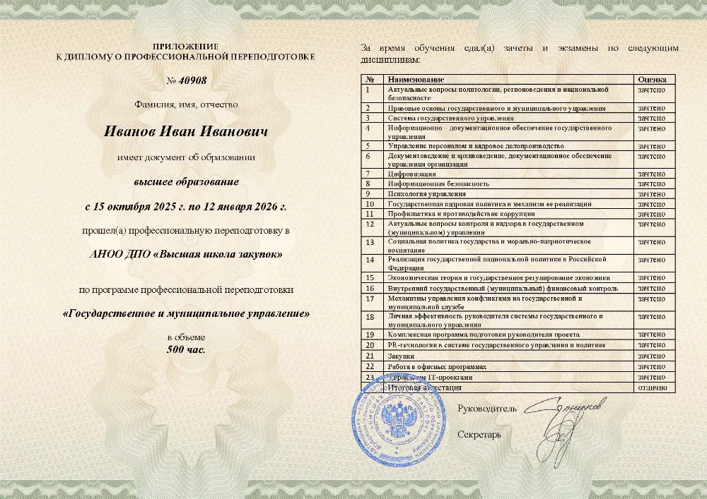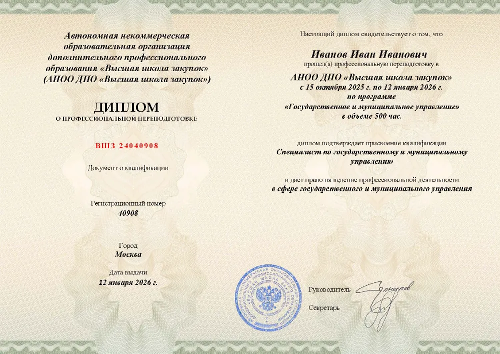Профессиональная переподготовка, 500 академических часов, 25 модулей: правовые основы и система государственного управления, управление персоналом, финансами и противодействие коррупции, социальная политика и экономическое регулирование, цифровизация, закупки и информационная безопасность. Онлайн-обучение в в Самаре с итоговой аттестацией.